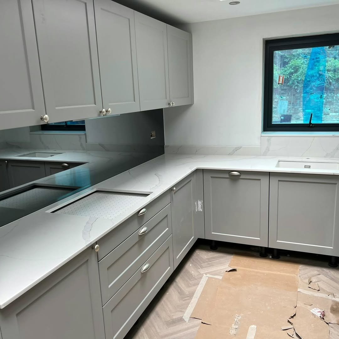 Grey Mirror Splashbacks offer a subtle, modern tint that reduces glare while brightening your space. This stylish grey splashback suits quartz, marble and porcelain worktops and is one of the most popular kitchen glass splashback choices for contemporary homes.