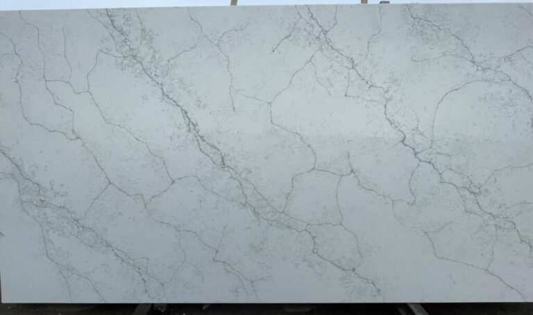 A stunning white quartz with striking emerald-green veins, offering a modern take on classic marble. Its bold contrast adds luxury and visual interest to interior spaces.