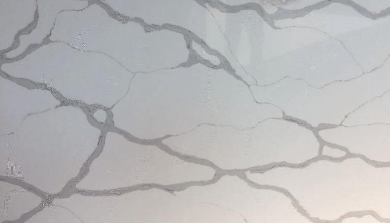 White marble-inspired quartz with distinctive grey “floral” veining that adds movement and charm. A durable, low-maintenance alternative to natural stone, perfect for bright, modern kitchens and elegant worktops.